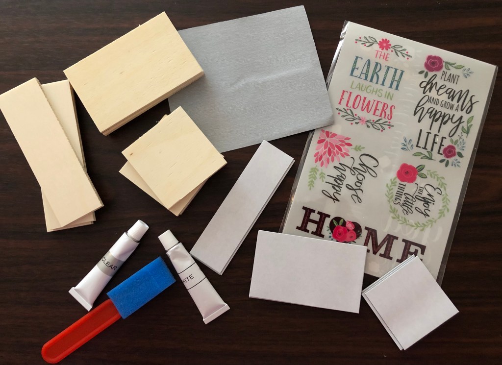 I feel like I should have sounded more excited in that headline, but it feels silly to add an exclamation mark to a title about making magnets. Either way, I was excited to finally get my package! Ok, the craft package was almost three weeks late, but I’m cutting them slack because they are located in Texas and I’m sure the recent issues with weather haven’t made it easy to get anything in or out of Texas. So this time its magnets. I started thinking they would probably be a snap, but have decided to withhold judgement until after I am done assembling them. I remember thinking napkin rings would be easy, so I just want to err on the side of caution this time.