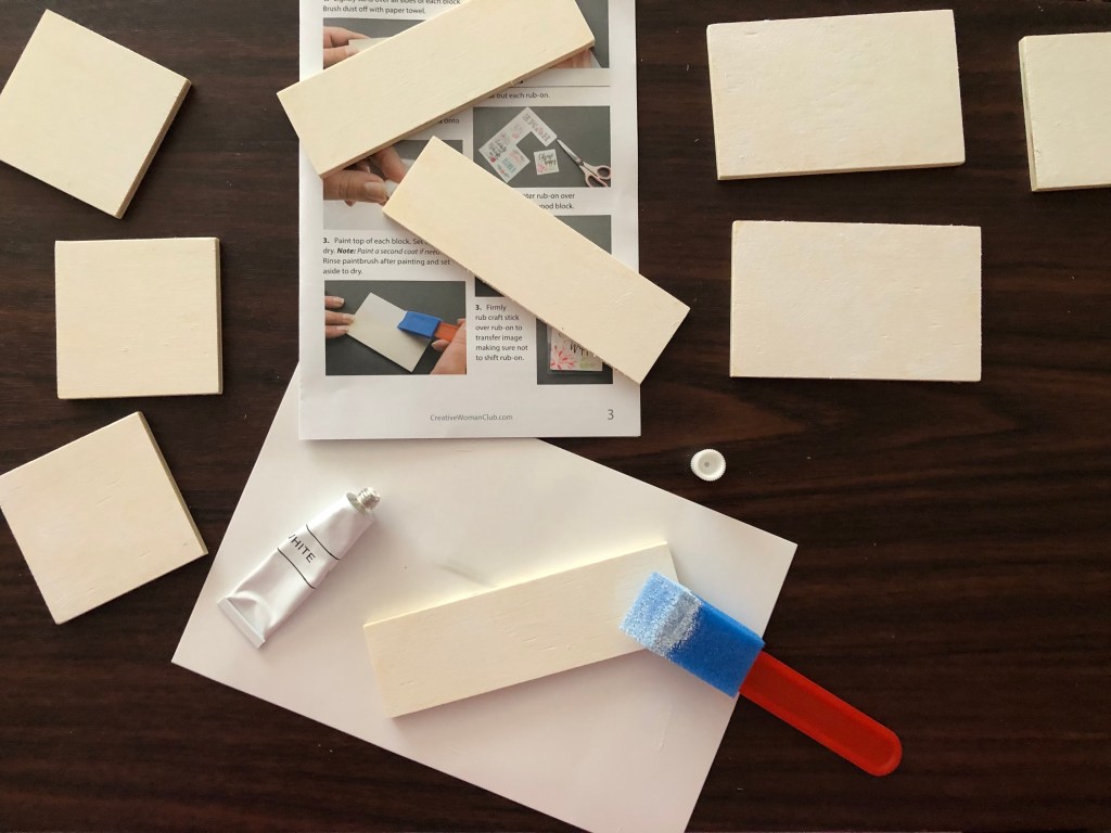 So now I’m going to wash my sticky paint covered hands and wait for this stuff to dry. I got paint everywhere because I was trying to hold the corners of the blocks with my fingernails to get them to hold still while dragging the blue foam ‘paintbrush’ over them trying to get my absolutely minimal amount of paint to spread over the flipping wood blocks!