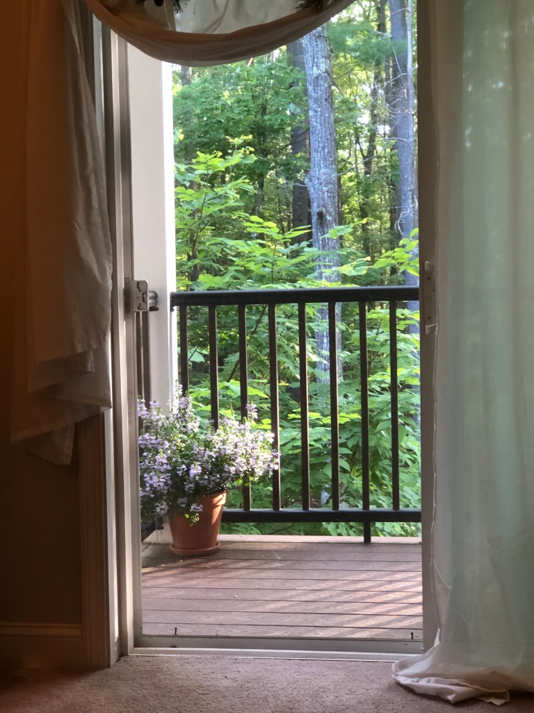Instead, I got the beauty in the picture. Please don’t ask me what it is or I’ll be forced to say ‘purple’ like it’s the name of the lovely plant I have on my deck. And that would be embarrassing.